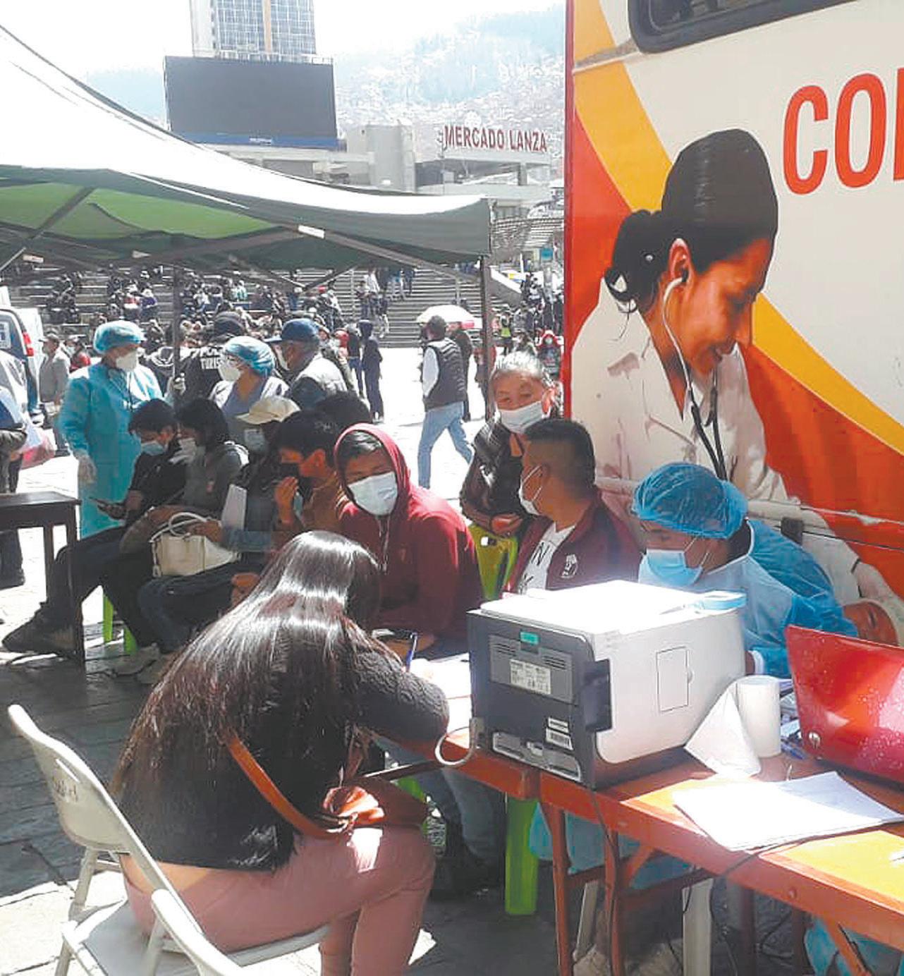 Tres puntos de vacunación, uno fijo del Servicio Departamental de Salud, en la plaza San Francisco, y otros dos móviles de la Alcaldía de La Paz, reportaron un incremento en la demanda de inoculación en 50%.