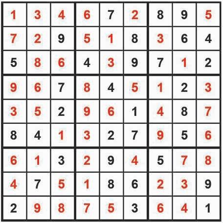 Debe completarse con los números del 1 al 9, sin repetir ningún número dentro de la fila, columna o cuadrado.