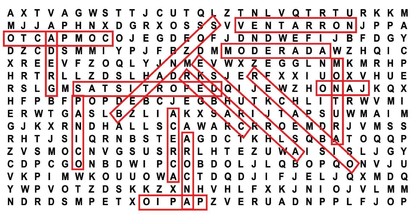 TRIADAS PONCHOS Y (FR.) HOGUERA TUMBA TABERNA PRASEODIMIO PRESA ALTARES AU CÍRCULO ...COMÚN LIBERAR MACETA (INV.) PELO BLANCO MARCA DE COCHES ESPERÉ (INV.) ESPECIE DE PRIMATE FORMATO DE ARCHIVOS EXPECTORA NUEVA DA PODER SECUESTRARÁ TOMA SILICIO LUTECIO REZAR AGRO VASIJA COPIA ORIENTE (INV.) OREJA (ING.) DEIDAD ANDINA NINGUNA COSA TORIO (INV.) RARO (ING. INV.) AVENA (ING.) EN ESE LUGAR COCHE (ING. INV.) CHOCA (INV.) FIESTA CAMBA MODO (ING.) ESPACIO (ING. INV.) SIGNO DEL ZODIACO FRISO (INV.) DEIDAD CON CABEZA DE IBIS (Aves rapaces) PROV. DE ORURO EL... ESPECIAL - Crucigramas - Palabras cruzadas - Sopas de letras - Sudokus - Diferencias - Laberintos - Humor y más... PROHIBIDA SU VENTA POR SEPARADO Nro. 185 Domingo 18 de diciembre de 2022 La Paz - Bolivia ¡AHORA CON MÁS SOPAS DE LETRAS! REY DE LOS HUNOS AQUÍ CASUALIDAD PODRE TOLERANTE ESTIMA