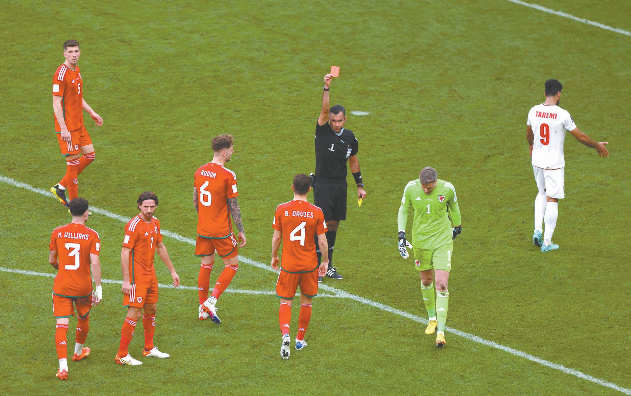 El árbitro guatemalteco Mario Escobar le mostró la tarjeta roja a los 41 minu tos del segundo tiempo al arquero galés Wayne Hennessey, quien se convirtió así en el primer expulsado del torneo.