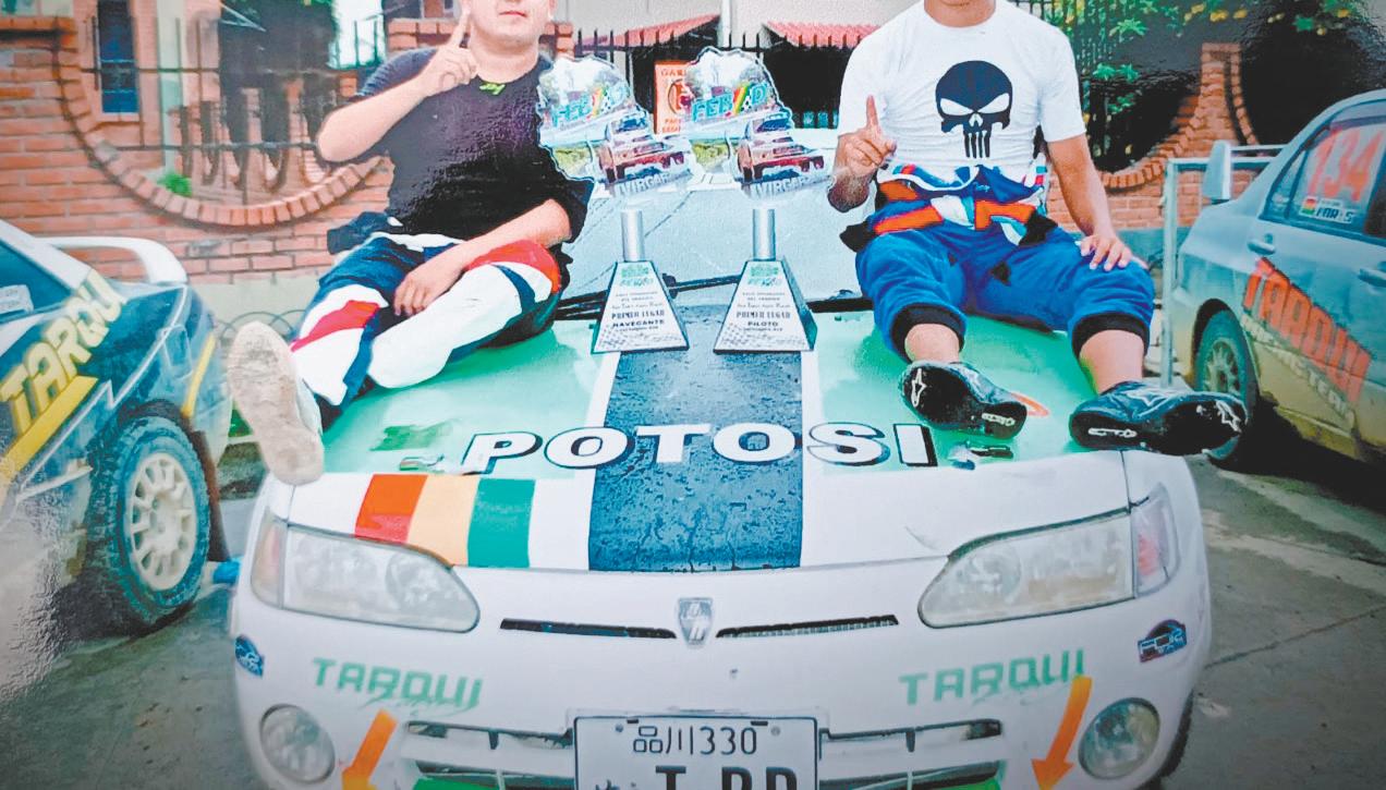 Los pilotos ganadores del Rally Integración del Trópico y los dirigentes.