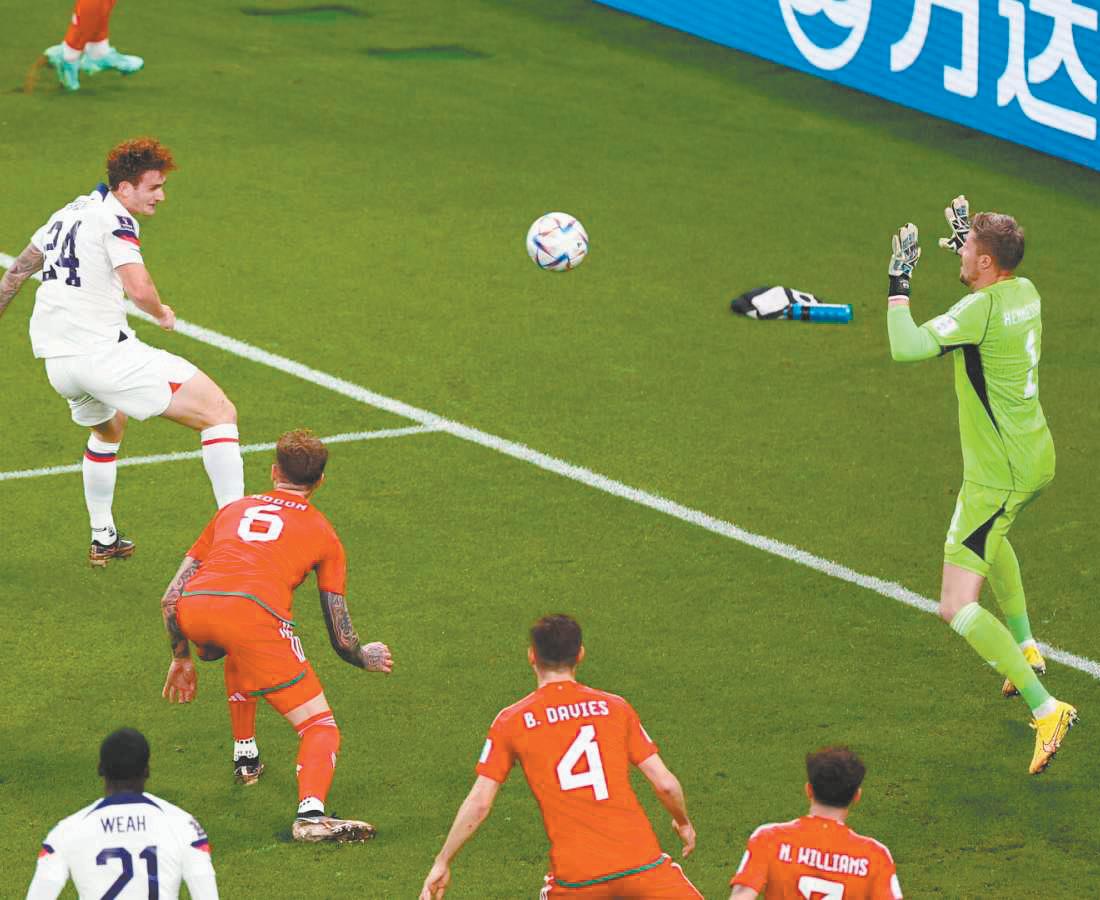 En el segundo tiempo, el elenco de Robert Page, luego de ir perdiendo 1-0, movió las fichas e ingre só a la cancha Kieffer Moore para potenciar el ata que, lo cual metió en más de una ocasión en pro blemas a la zaga del combinado de Estados Unidos, que incluso al minuto 64 se vio amenazado con Ben Davies, que casi sorprende al arquero Matt Turner y debió extremarse para salvar a su equipo.