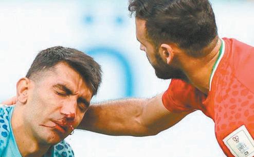 lis pagó caro precio por su arrojo porque chocó con su compañero Majid Hosseini y recibió tan fuerte impacto en el rostro que se vio obliga do a dejar el campo de juego, tiempo después, luego de que el partido estuviese interrumpi do por más de 10 minutos.
