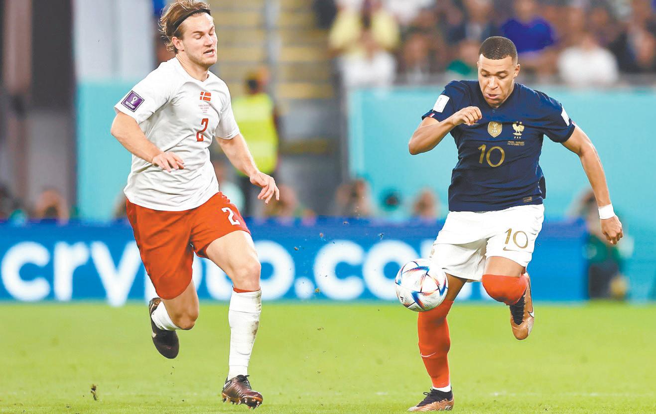 Francia, actual campeón mundial y candidato al ‘bi’, se convirtió ayer en el primer seleccionado clasificado a los octavos de final del torneo ecuméni co de Qatar 2022 al vencer a Dinamarca por 2 a 1, con dos tantos de su astro Kylian Mbappé, en el estadio 974, en la continuidad del Grupo D. Mbappé, a los 16 minutos y 40 minutos del segundo tiempo, lideró a los franceses, mientras que el dinamarqués Andreas Christensen, a las 22’ de la misma eta pa, marcó el empate momentáneo.