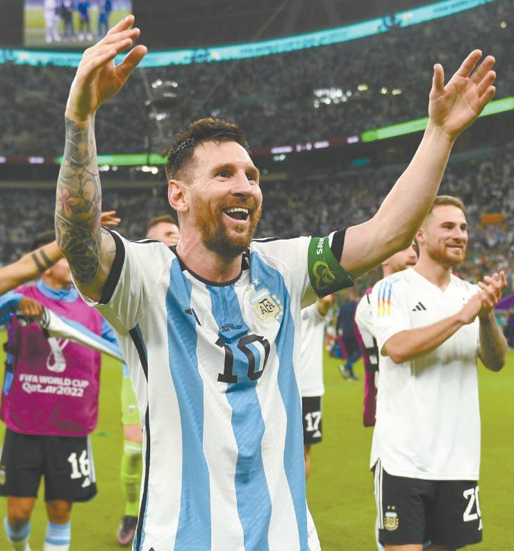 Respecto del gol y de los rumores de una lesión en su tobillo izquierdo, Messi sonrió y comentó que “se dijeron tantas cosas, no tuve nada en el tobillo antes del partido con Arabia y en el último minu to del primer partido me lo doble. Luego me repu se bien e hice bien el esfuerzo que había que hacer”.