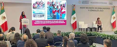 La secretaria de Educación Pública, Leticia Ramírez Amaya, participó en la XXXIV Reunión de Embajadores y Cónsules (REC 2023), en la sede de la Secretaría de Relaciones Exteriores (SRE), donde informó sobre los avances en el sector educativo, tanto en el país como en atención a los mexicanos en el exterior.