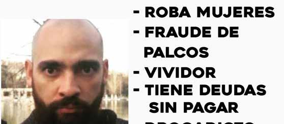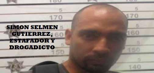 Los afectados dicen que Simón Selmen Gu tiérrez elige como víctimas principalmente a mujeres, está relacionado con algunos casos de fraude con la venta de palcos, tiene adeu dos por préstamos, gusta de apostar fuertes cantidades de dinero, es una persona violenta aunado a su afición a las drogas, por lo que es peligroso.