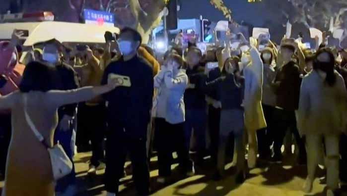 Cientos de personas se manifestaron sosteniendo hojas de papel en blanco en una protesta silenciosa, mientras que otros pidieron públicamente la renuncia del líder chino Xi Jinping.