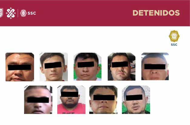 En despliegue conjunto entre gendarmes de la SSC y agentes de la Policía de Investigación, fueron detenido nueve integrantes del grupo delictivo “La Unión Tepito” entre ellos Raúl “N” (a) “El Jefe” colaborador de Roberto Mollado Esparza “El Betito”, la célula criminal tenía pre sencia y operación en colonias de las alcaldías Venustiano Carranza y Cuauhtémoc, particular mente en la Zona Centro.