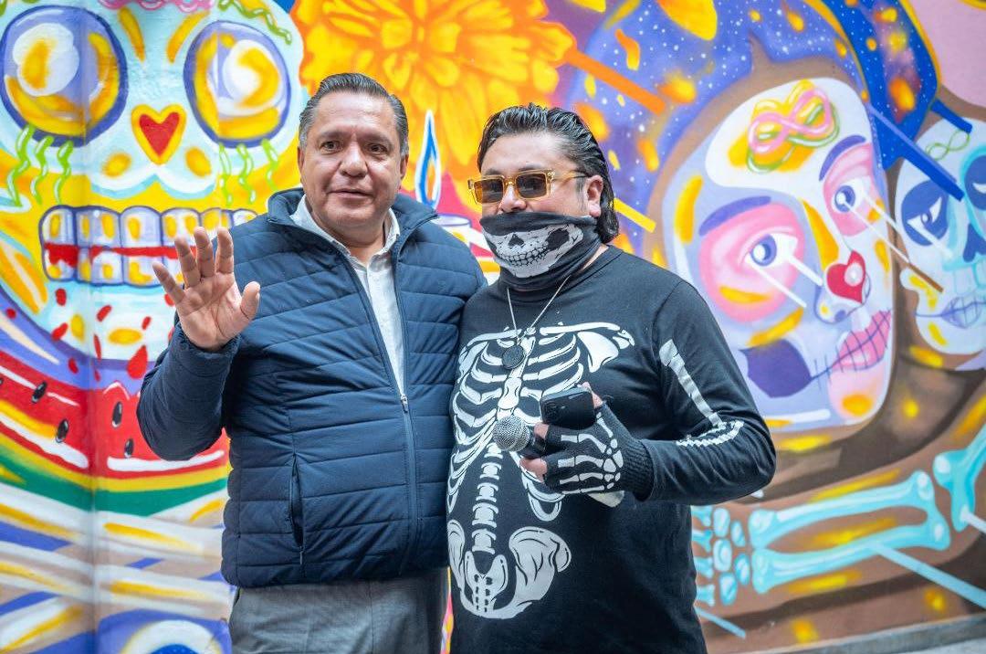 oportunidad de compartir su arte con la población y explicó que este mural es una obra que funciona como un umbral visual hacia el corazón de Toluca transforma el espacio arquitectónico en una ofrenda permanente, donde la vida y la muerte dialogan a través del color y la identidad mexiquense, rindiendo tributo al patrimonio inmaterial de la ciudad.