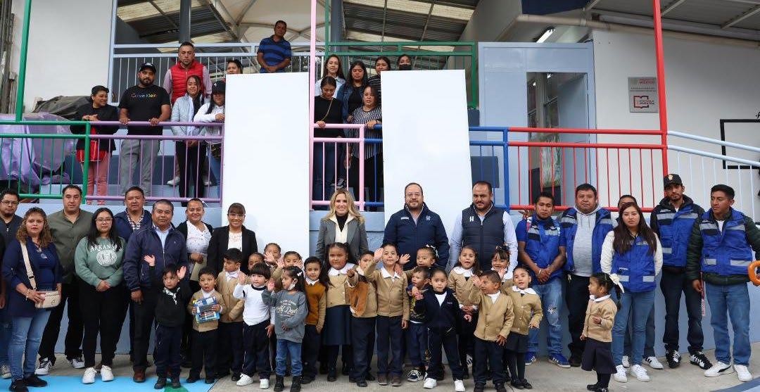 Huixquilucan, Méx.- La alcaldesa Romina Contreras Carrasco, al entregar los trabajos de rehabilitación de la Primaria “Emiliano Zapata” y el Jardín de Niños “Carmen Serdán, anunció que continuará con el compromiso de fortalecer la infraestructura educativa, toda vez que el contar con escuelas en óptimas condiciones, mejora el rendimiento académico, pues los estudiantes asisten con mayor motivación, a clases, lo que ayuda a reducir la deserción escolar, además de consolidar un sentido de pertenencia hacia la institución.
