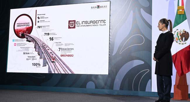 Ciudad de México.– La presidenta de México, Claudia Sheinbaum Pardo, encabezó la inauguración del tramo Santa Fe–Observatorio del Tren El Insurgente, con lo que se concluye la obra ferroviaria que conecta a Toluca con la Ciudad de México en un tiempo de traslado menor a 60 minutos, tras una inversión aproximada de 100 mil millones de pesos. Durante la conferencia matutina “Las mañaneras del pueblo”, realizada en la Cineteca Nacional Chapultepec, la mandataria destacó que el proyecto representa una nueva visión de movilidad al integrar transporte público de primer nivel, recuperación del espacio público y atención a zonas populares como Santa Fe. Subrayó que la obra también permitió el rescate de áreas históricas y naturales, así como la creación de infraestructura cultural en la Cuarta Sección del Bosque de Chapultepec.