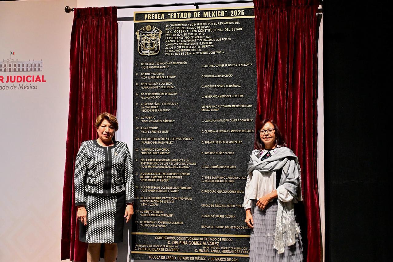 Ayer, nuestra entidad conmemoró su 202 aniversario de fundación en el municipio de Texcoco, por lo que la gobernadora DELFINA GÓMEZ ÁLVAREZ entregó la Presea Estado de México 2025 a ocho mujeres, cinco hombres y tres instituciones públicas que han contribuido al bienestar e innovación de la entidad.