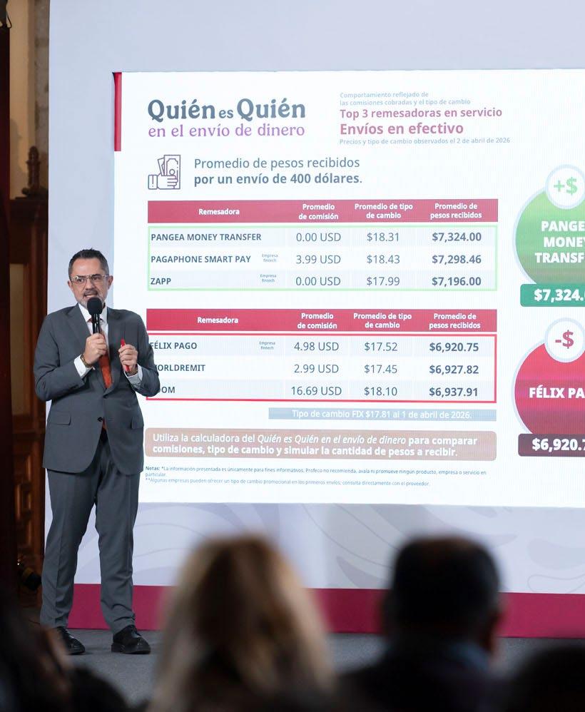 Ciudad de México.- En la conferencia matutina, Iván Escalante, titular de la Procuraduría Federal del Consumidor, dio a conocer el reporte semanal de los precios en la canasta básica y servicios indispensables para un grosso de la población. En su sección denominada “Quién es quién”, dio algunos consejos básicos para los consumidores, entre los que destacan: Revisar el tipo de cambio al elegir el servicio de las remesadoras, con FINABIEN, recibe 337 pesos mexicanos, más vía depósito o transferencia, la misma presentación de sardina puede costar entre 18 y 41 pesos, dependiendo en dónde se compre, por lo que se recomienda hacer una revisión previo al adquirirlo y de esa manera obtener un precio justo.