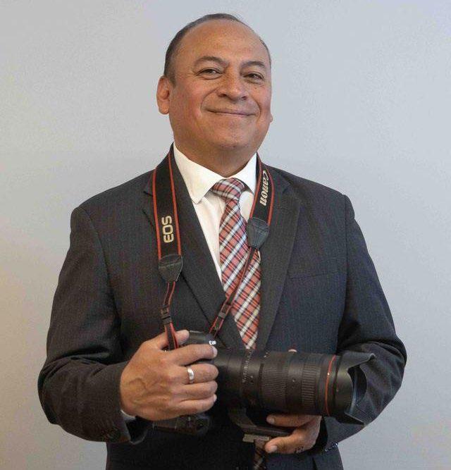 universo inagotable. Pero más allá del trabajo, encontró pertenencia. Después de 25 años de trayectoria laboral, la Máxima Casa de Estudios mexiquense es parte de su vida. Cada mañana, aseguró, se levanta con entusiasmo. Cada evento es una oportunidad para mejorar. Sus primeros años en la UAEMéx coincidieron con una transformación clave: el cambio de la fotografía análoga a la digital. Lejos de resistirse, Lázaro decidió adelantarse. Aprendió desde cero, muchas veces quedándose en su espacio de trabajo hasta la madrugada para entender cámaras, computadoras, procesos. Impulsó la transición tecnológica en el Departamento de Fotografía de la entonces Oficina del Vocero de la Autónoma mexiquense, convencido de que la fotografía debía evolucionar. Su esfuerzo no solo fue técnico, también formativo: construyó una nueva forma de trabajar, más ágil, más inmediata. Esa misma entrega se refleja en su vida personal. Su familia ha sido testigo de su pasión, pero también de sus sacrificios. Reconoce que ha dedicado muchas horas al trabajo, a veces en detrimento del tiempo en casa. Sin embargo, su esposa e hijos han acompañado su camino.