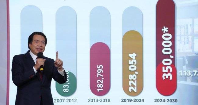 Educación Pública, Mario Delgado Carrillo. Durante “La mañanera del pueblo”, el titular de la SEP destacó que, en el caso de la Educación Media Superior, Delgado Carrillo señaló que se realizan inversiones en infraestructura para alcanzar 200 mil nuevos espacios hacia 2030. Recordó que en 2025 se llevaron a cabo 88 acciones, mientras que en 2026 se contemplan más de 500, con una inversión superior a los 13 mil millones de pesos en ambos años. En lo que respecta a la Educación Superior, destacó la inversión en la Universidad Nacional Rosario Castellanos (UNRC), la cual en 2025 destinó mil 15 millones 417 mil 998 pesos para mejorar la infraestructura en seis entidades del país. Para 2026, esta universidad recibirá mil 260 millones 864 mil 610 pesos para ampliar su presencia en 11 estados más.