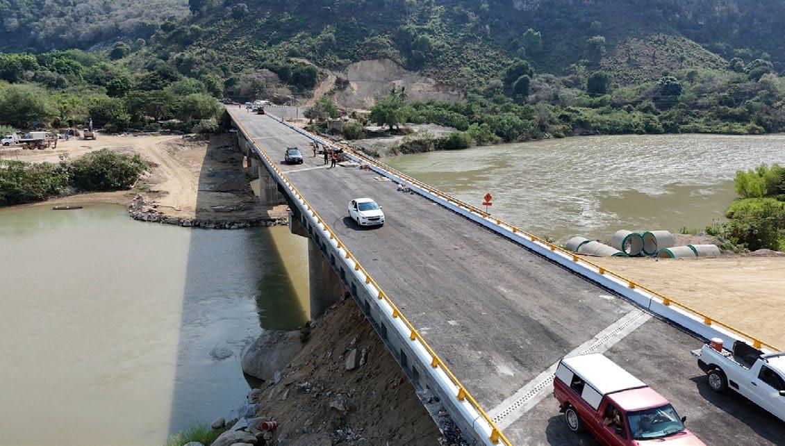 Puente “Omitlán”. Ruta 198 ChilpancingoAcapulco, tramo Tierra Colorada-Cruz Grande, km 5+964 con 220 metros de longitud. Al desbordarse el río por el paso del huracán John, levantó al antiguo puente, por lo que se rediseñó siete metros más alto y cuenta con cinco claros. La inversión fue de más de 145 millones de pesos en beneficio de más de 26.1 mil habitantes. Se instaló una estructura de concreto reforzado apoyada en vigas metálicas, cimentación profunda y accesos con muros de contención también de concreto (290 metros).