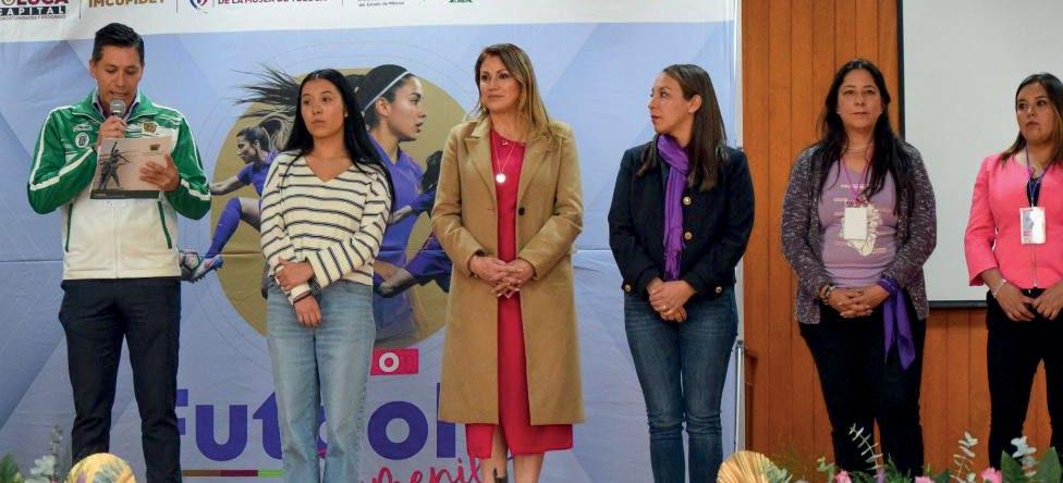 deportivo del Club América Femenil, presentó la charla “La mente de la futbolista”, enfocada en la preparación psicológica y el bienestar emocional de las atletas. Uno de los momentos más enriquecedores fue la mesa “Retos y perspectivas del futbol femenil en México”, donde participaron Beatriz Cova Guzmán, coordinadora general de la Liga TDP Femenil de la Federación Mexicana de Futbol; Teresa Ixchel Alonso García, ex seleccionada nacional de natación artística; así como las futbolistas Karla Lorena Martínez Díaz y Kamila Ramírez Delfín, jugadoras vinculadas al Deportivo Toluca. El evento contó con la presencia de Rocío Pegueros Velázquez, presidenta honoraria del DIF Toluca; Ana Victoria Tapia, segunda regidora del Ayuntamiento; representantes del Instituto de la Mujer de Toluca, autoridades académicas de la Facultad de Ciencias de la Conducta de la UAEMéx y la directora general del IMCUFIDET, Berenice Castro Plaza.