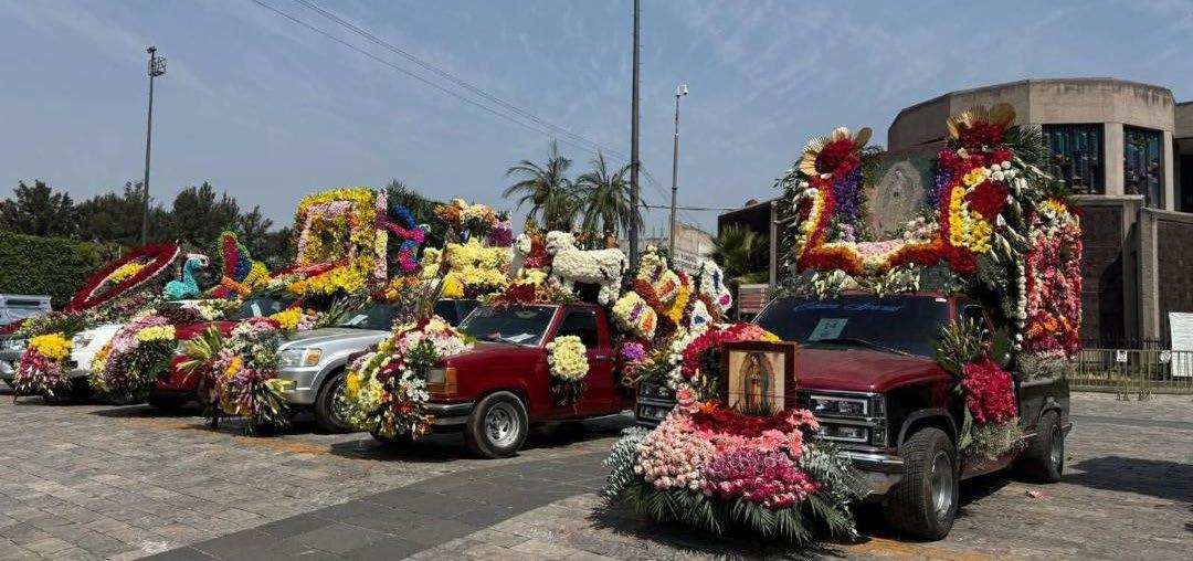 Entre flores y fe, floricultores de Tenancingo llegan a la Basílica con vehículos adornados