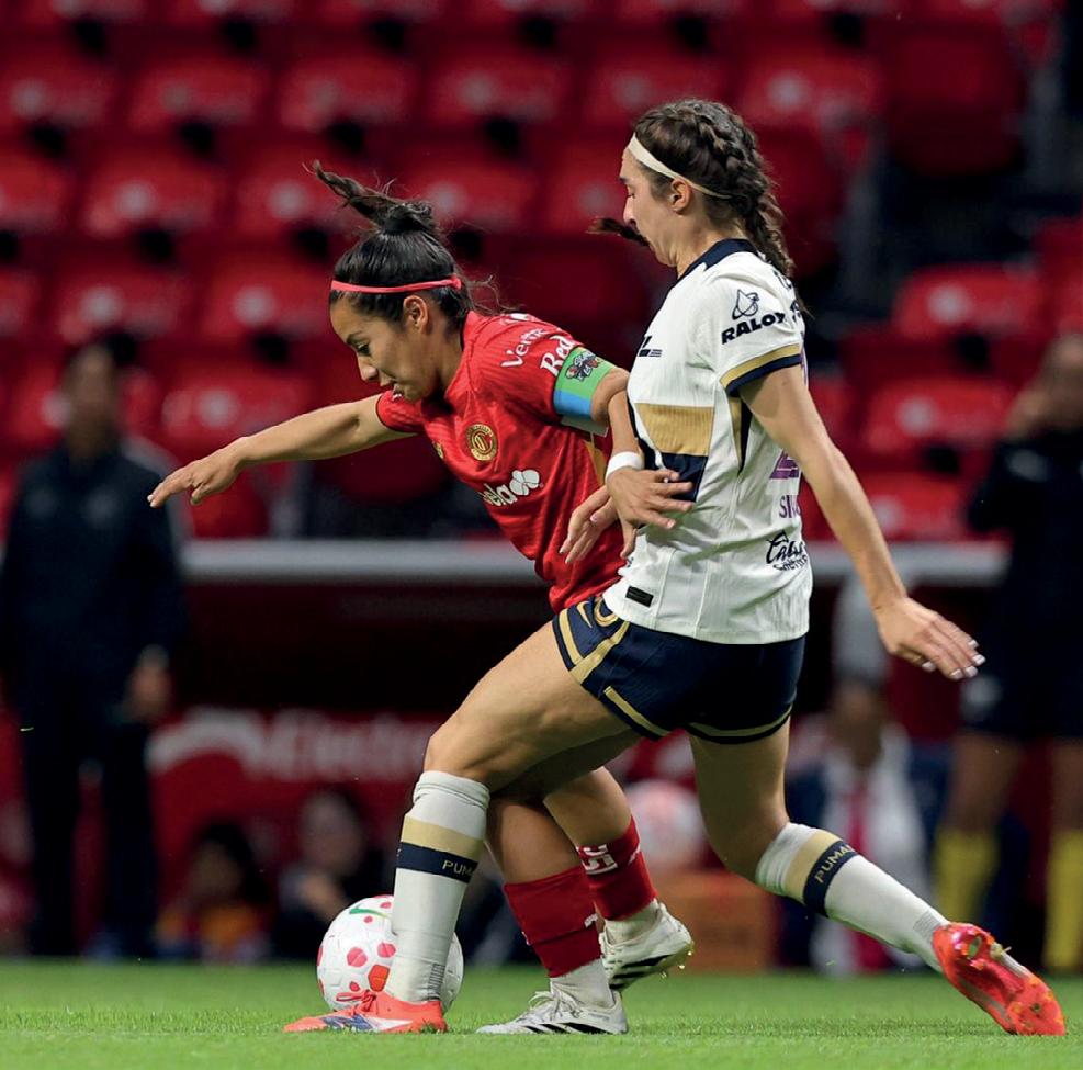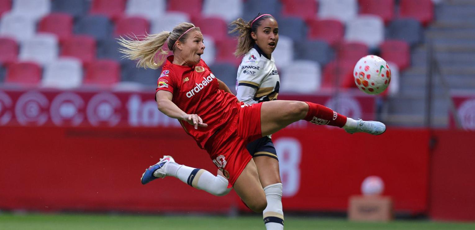 Toluca, Méx.- Las Diablas Rojas del Toluca demostraron carácter y capacidad de reacción al remontar el marcador para imponerse 4-2 a Pumas, en partido correspondiente a la jornada 11 de la Liga MX Femenil disputado en el Estadio Nemesio Diez. Con este resultado, el conjunto escarlata sumó tres puntos valiosos que lo colocan momentáneamente en el segundo lugar de la clasificación general con 25 unidades. El duelo comenzó con un ritmo intenso y con ambos equipos intentando generar peligro desde los primeros minutos. Toluca buscó adueñarse del balón y presionar en campo rival, mientras que Pumas apostó por el orden defensivo y los contragolpes. Fue al minuto 39 cuando las universitarias lograron abrir el marcador gracias a Stephanie Ribeiro, quien definió con precisión para poner el 0-1 y silenciar momentáneamente el “Infierno”.