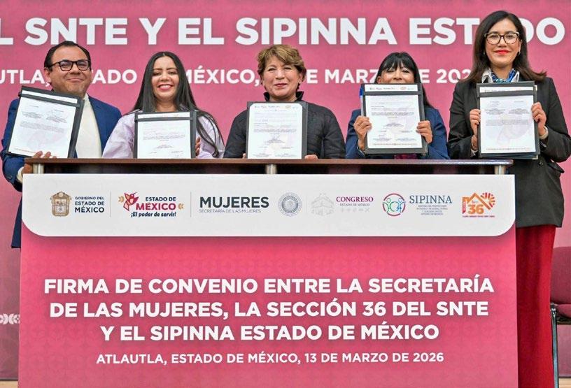 El convenio suscrito reconoce al magisterio como un actor estratégico en la prevención de las violencias y en la promoción de relaciones igualitarias dentro de los espacios escolares. El documento fue firmado por María Esther Rodríguez Hernández, titular de la Secretaría de las Mujeres del Estado de México; Mónica Miriam Granillo Velazco, secretaria general de la Sección 36 del SNTE Valle de México; y Tania Montcerrat Granados Cervantes, secretaria ejecutiva del SIPINNA estatal. También participó como testigo de honor Rigoberto Vargas Cervantes, presidente de la Comisión de Educación, Cultura, Ciencia y Tecnología de la Legislatura del Estado de México. Entre los objetivos del acuerdo destaca impulsar acciones conjuntas orientadas al fortalecimiento de la profesionalización y capacitación del magisterio mediante procesos formativos en temas de igualdad y perspectiva de género.