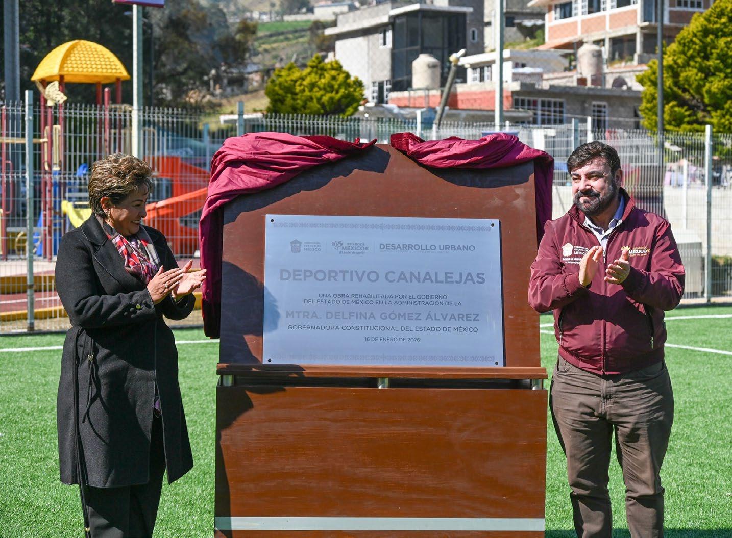 Isidro Fabela, Méx.- Con una inversión superior a los 17.9 millones de pesos, el Gobierno del Estado de México, encabezado por la Maestra Delfina Gómez Álvarez, llevó a cabo la rehabilitación integral del Deportivo “Canalejas”, en el municipio de Isidro Fabela, para beneficiar a más de 4 mil 200 habitantes como parte del Programa de Obra Pública.