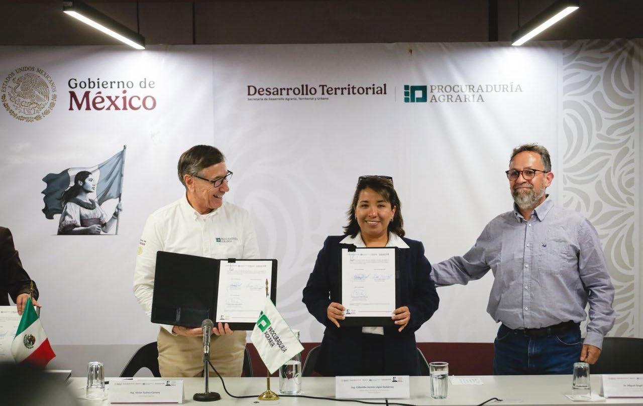 Ciudad de Mexico.- La subsecretaria de Inclusión Productiva y Desarrollo Rural de la Secretaría de Bienestar, Columba Jazmín López Gutiérrez y el procurador Agrario, Víctor Suárez Carrera, firmaron un Convenio Marco de Colaboración para la atención en derechos agrarios en los territorios donde opera el programa Sembrando Vida, con un enfoque prioritario en el acceso de las mujeres a la tierra y a la certeza jurídica sobre ella. A través de este convenio, se facilitará la asesoría jurídica, la acreditación de derechos, la resolución de conflictos agrarios y el acompañamiento en procesos de sucesión, lo que permitirá avanzar en la regularización de parcelas y en el reconocimiento de mujeres como titulares de derechos agrarios en ejidos y comunidades.