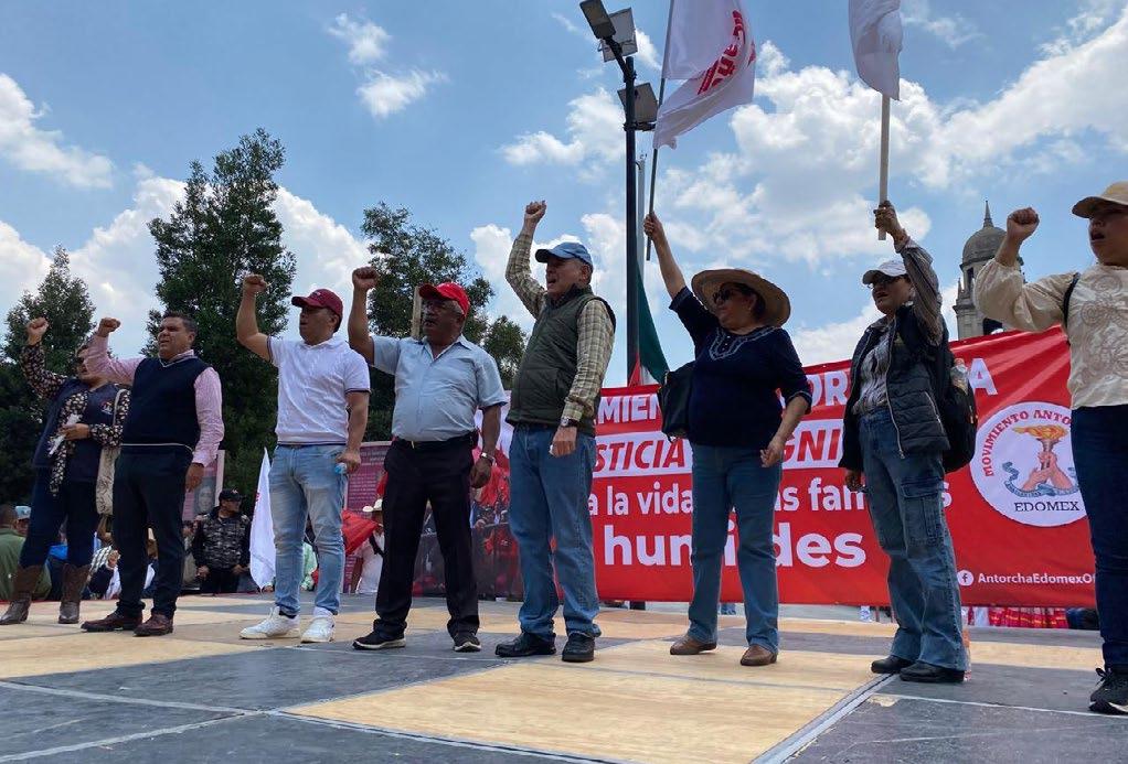Toluca, Méx.- Centenares de integrantes del Movimiento Antorchista en el Estado de México se manifestaron esta mañana por las principales calles y avenidas de esta ciudad, con el propósito de entregar a los funcionarios del palacio de gobierno, de nueva cuenta, el pliego petitorio que integra las necesidades de las comunidades organizadas, mismo que no ha recibido respuesta desde febrero de 2025 y, también, para solicitar audiencia con la gobernadora Delfina Gómez Álvarez. Durante su recorrido, que partió de la plaza Simón Bolivar, en el centro de la ciudad, los manifestantes corearon consignas mediante las cuales denunciaron las carencias que tienen en cada una de sus comunidades de origen, además, por diversos vehículos con altavoces, informaron a la ciudadanía las razones y los objetivos de la movilización. Durante el mitin central, efectuado frente al palacio de gobierno, los oradores realizaron una exposición detallada del agravamiento de la situación en la que viven los colonos y campesinos por la falta de respuesta oportuna, por parte del gobierno del Estado,