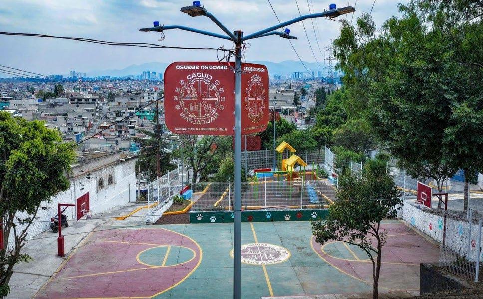 Tanto en los alrededores de las canchas, ahora pintadas, y el área de juegos infantiles, se colocó malla protectora para una mayor seguridad de niñas, niños, jóvenes y adultos que acuden a realizar actividades deportivas o de convivencia. Instalación de botes de basura y bancas, así como el fondeo de muros, limpieza en general y recolección de más de 6 toneladas de residuos sólidos.