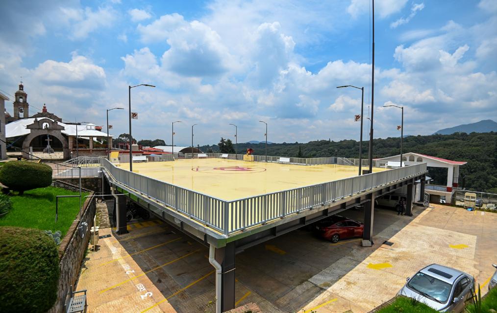 Carlos Maza Lara, Secretario de Desarrollo Urbano e Infraestructura, explicó que la obra destaca por la construcción de la plaza en el primer nivel del área, un trabajo de ingeniería en el que se utilizó cimentación de concreto armado con perfiles de acero y placas de conexión con losa de lámina galvanizada. Con este diseño se aprovechó el espacio para habilitar un estacionamiento