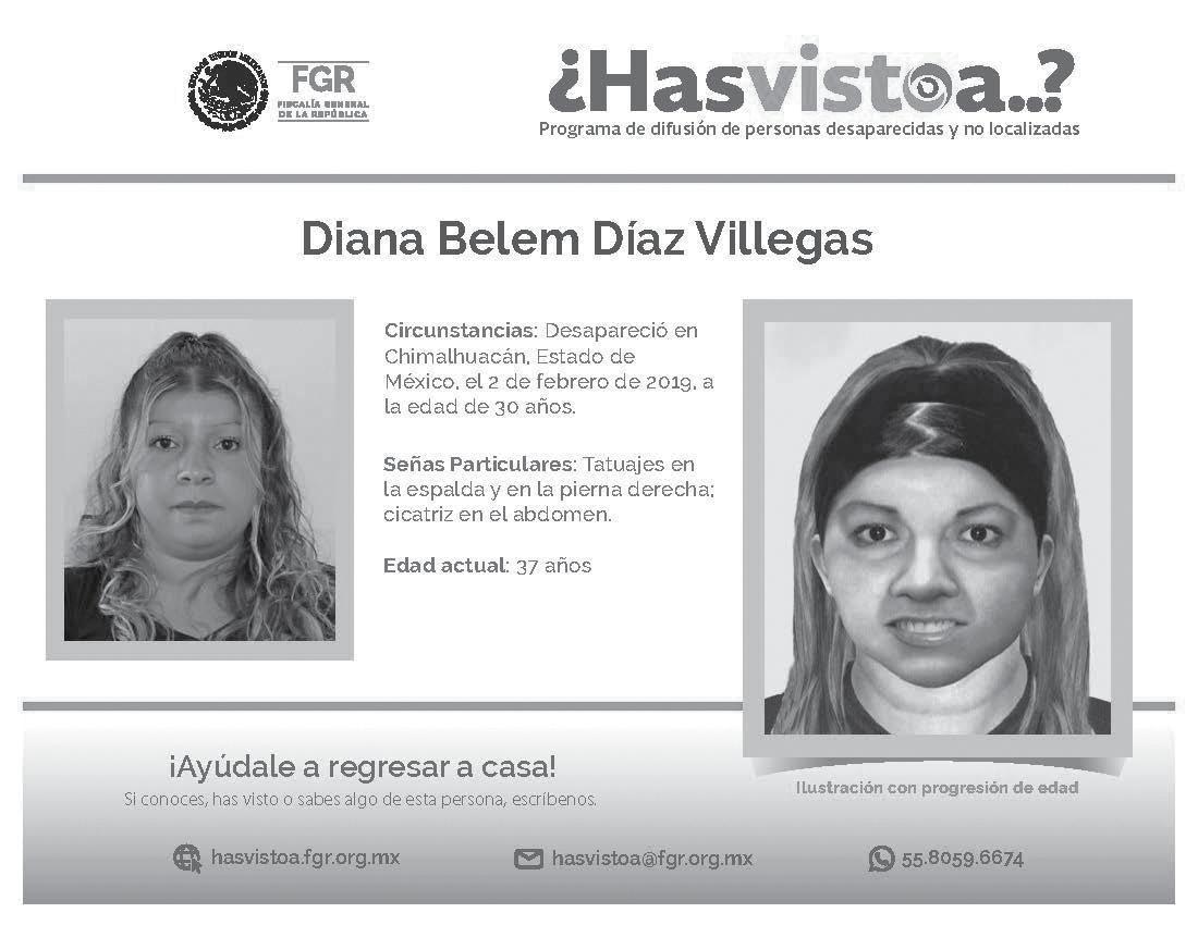 fue vista vestía tenis blancos, chamarra y playera color beige, mochila negra, sudadera roja y pantalón de vestir azul marino con detalles de flores. Como seña particular, tenía un lunar en la frente. La difusión fue constante durante varios días, mientras familiares recorrían hospitales, agencias del