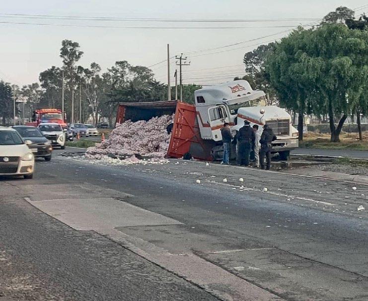 San Pablo Autopan, Méx. – Por la mañana de este 22 de abril se registró la volcadura de un tráiler cargado con costales de cebollas sobre la carretera Toluca–Atlacomulco, a la altura de la comunidad de San Pablo Autopan, pasando la zona del Mercado de Palmillas, lo que ocasionó el cierre parcial de carriles y afectaciones importantes sobre la circulación en dirección hacia la capital del Estado de México. Gracias a los con reportes confirmados por los medios de comunicación locales, vecinos y a las autoridades de auxilio vial, se sabe que, el accidente ocurrió en el tramo donde los carriles centrales se dividen de los laterales, siniestro que ocurrió cuando el conductor del tráiler perdió el control por completo de la unidad, provocando así que, el vehículo terminara totalmente recostado sobre el camellón o canaleta divisoria. El impacto provocó que la carga de cebollas quedara regada sobre el asfalto, situación que obligó a los conductores que estaban circulando por la zona, la reducción y cierre de los carriles de baja velocidad mientras se realizaban labores de retiro del producto y del vehículo siniestrado. Los elementos de emergencia, la Guardia Nacional y el personal de apoyo carretero acudieron al sitio para poder abanderar la zona del accidente, retirar la carga esparcida de los vegetales y coordinar maniobras para liberar la vialidad lo más rápido posible.