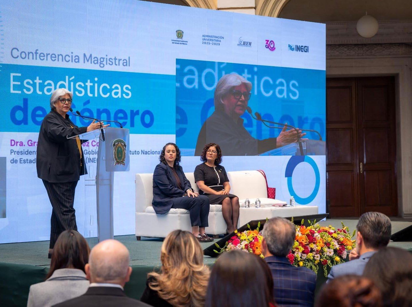 Es del evento que se llevó a cabo en la rectoría de la Universidad Autónoma del Estado de México, donde la presidenta de la Junta de Gobierno del Instituto Nacional de Estadística y Geografía, GRACIELA MÁRQUEZ COLÍN, ofreció la conferencia magistral “Estadísticas de Género”, un ejercicio importante que nos lleva a la reflexión, pues a pesar del discurso
