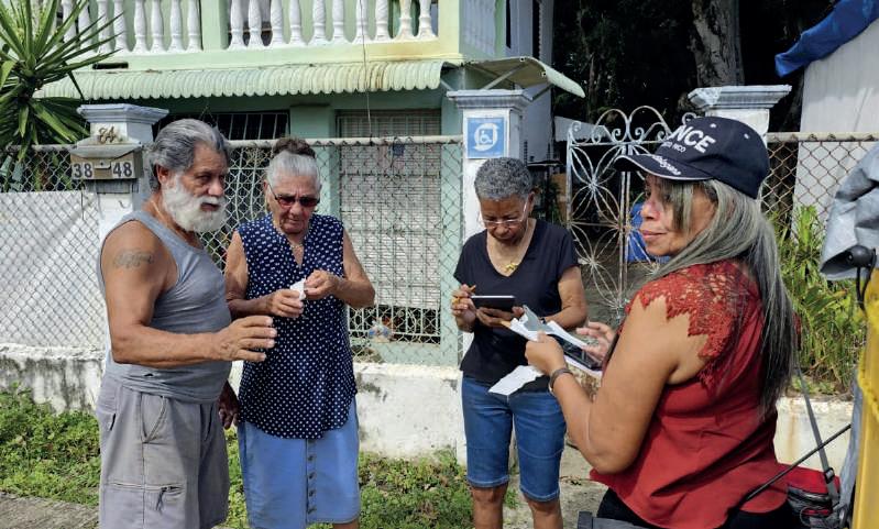 Un grupo de participantes del Centro de Edad Dorada Villa Madrid visitaron diversas comunidades para orientar a los residentes sobre cómo enfrentar eventos atmosféricos como huracanes y terremotos.