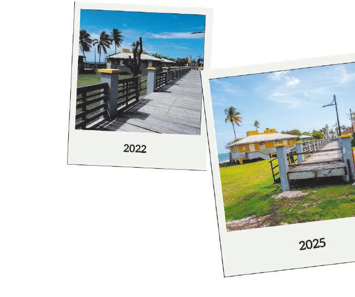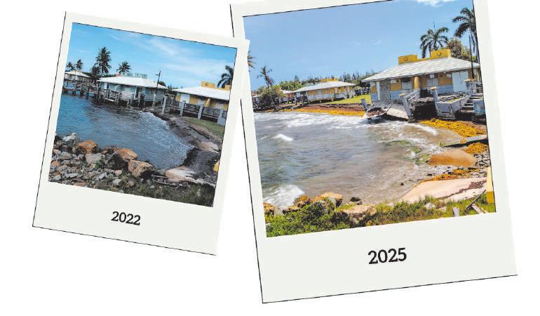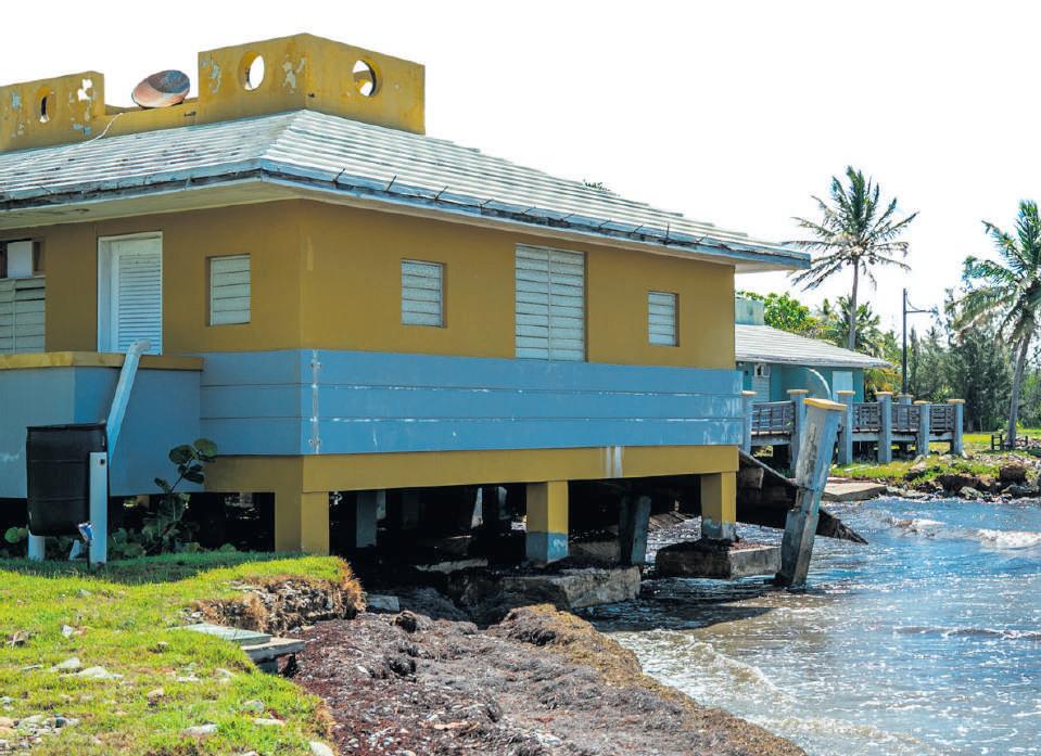 La villa azul que en 2022 estaba frente al mar, fue demolida. Los cimientos de la villa amarilla ahora están en el agua. La demolición de esta estructura está en planes.