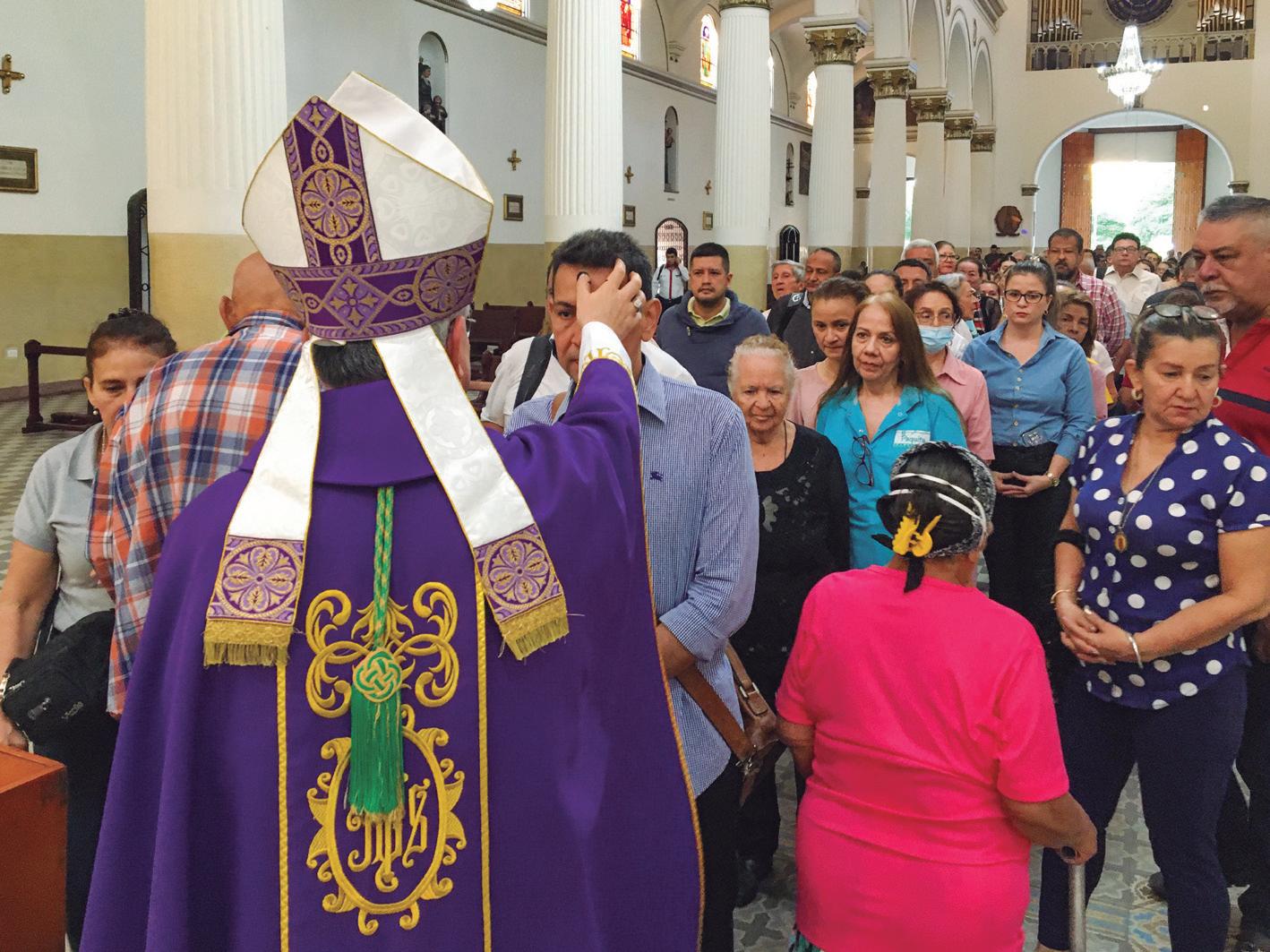 Antes de culminar la homilía, Monseñor Garcés insistió en tener muy presente que: “Todos somos pecadores, pero lo que se espera de un creyente es que no permanezca en situación de pecado por mucho tiempo”. Por último, bendijo la ceniza que se obtiene al quemar las palmas del Domingo de Ramos del año anterior, recordando que el paso por esta vida terrena es pasajero y que la vida eterna se encuentra en el cielo; y seguidamente impuso la ceniza en la frente de los fieles bautizados, diciendo: “Conviértete y cree en el Evangelio”.