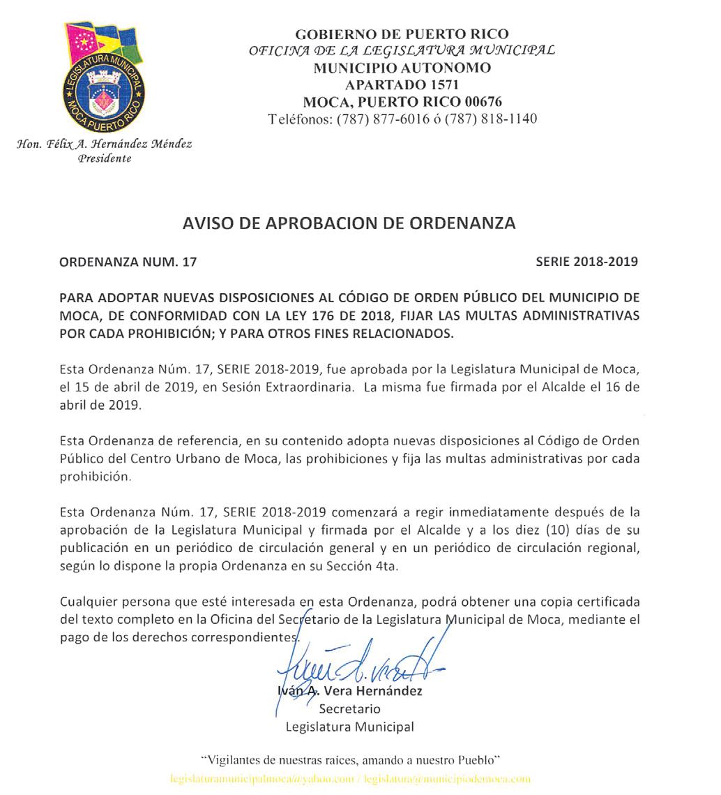 Tel. 787-834-6829 2 al 8 de mayo de 2019