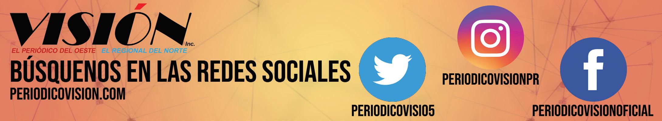 PERIÓDICO VISIÓN OESTE | 29 de septiembre al 5 de octubre de 2022 REGIONALES02 Tel. 787-834-6829 periodicovision@gmail.com Oficina Central Calle Ramón E. Betances Sur #178 Mayagüez, Puerto Rico, 00680
