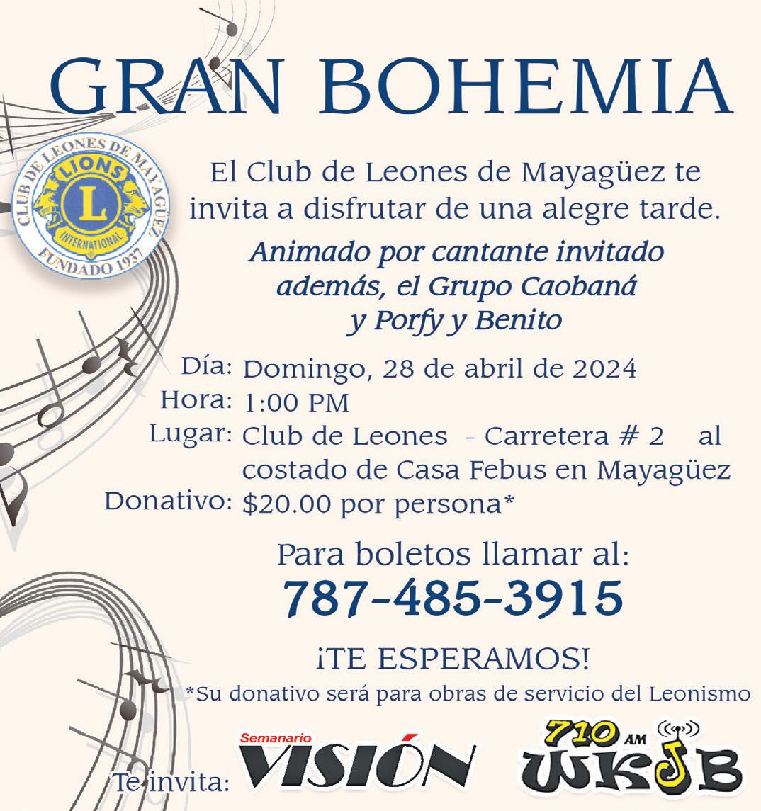 Para boletos puede acceder a www.embaepr. com o llamar al (787) 8068818.