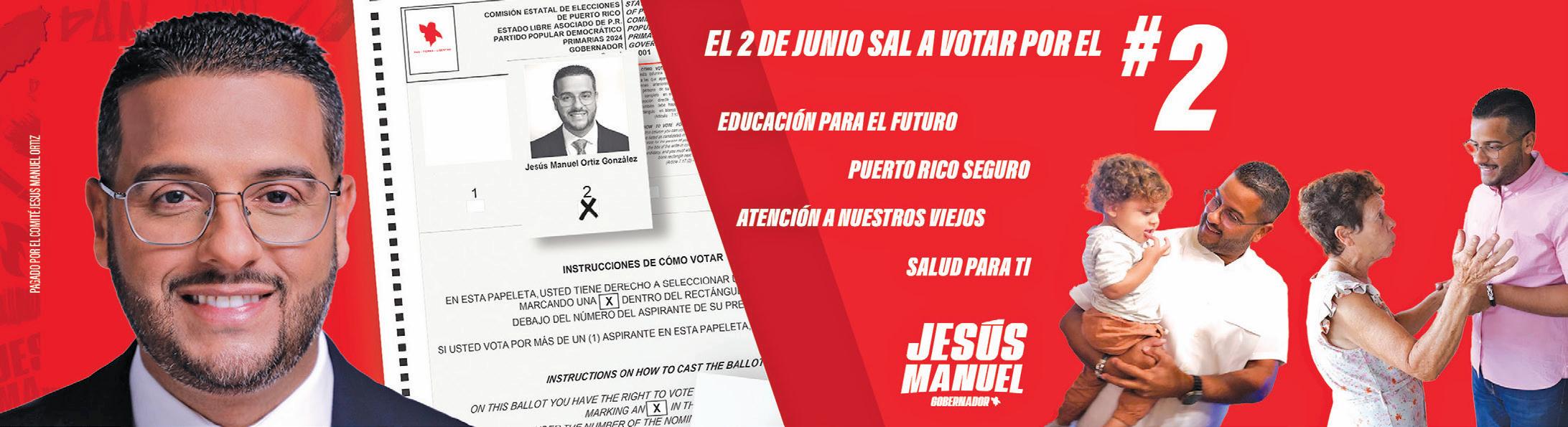 EDICIÓN 1753 30 DE MAYO AL 5 DE JUNIO DE 2024 www.periodicovision.com PERIODICOVISIONOFICIAL ALCALDES Y FIGURAS DESTACADAS DEL PPD Y PNP EXPRESAN SUS PREFERENCIAS PARA LAS PRÓXIMAS PRIMARIAS RESPALDAN DIVERSOS CANDIDATOS LÍDERES