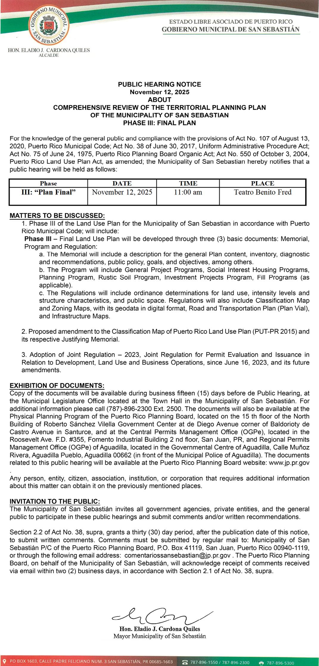 Para obtener información adicional, puede comunicarse con el Ing. María Crespo Lorenzo, directora Auxiliar de Cumplimiento en la Región Oeste, a través del (787) 620-2277 ext. 3231.