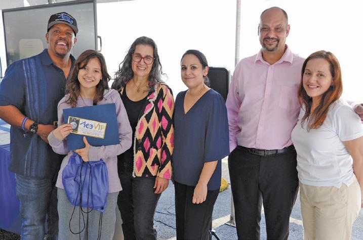 AC3 SOFT OPENING: SAMIRA LIAN, ESTUDIANTE DE 8VO GRADO (2DA DE IZQUIERDA A DERECHA) PARTICIPANTE DE ACTIVIDADES DE AC3 RECIBE PASE O BOLETO (LIFETIME PASS) GRATUITO PARA VISITAR EL CENTRO. LE ACOMPAÑAN LOS INVESTIGADORES LÍDERES DE AC3 JASON WILLIAMS, PATRICIA ORDOÑEZ Y JOSÉ AGOSTO, JUNTO A YADIRA ORTIZ Y YASMIN SANTIAGO.