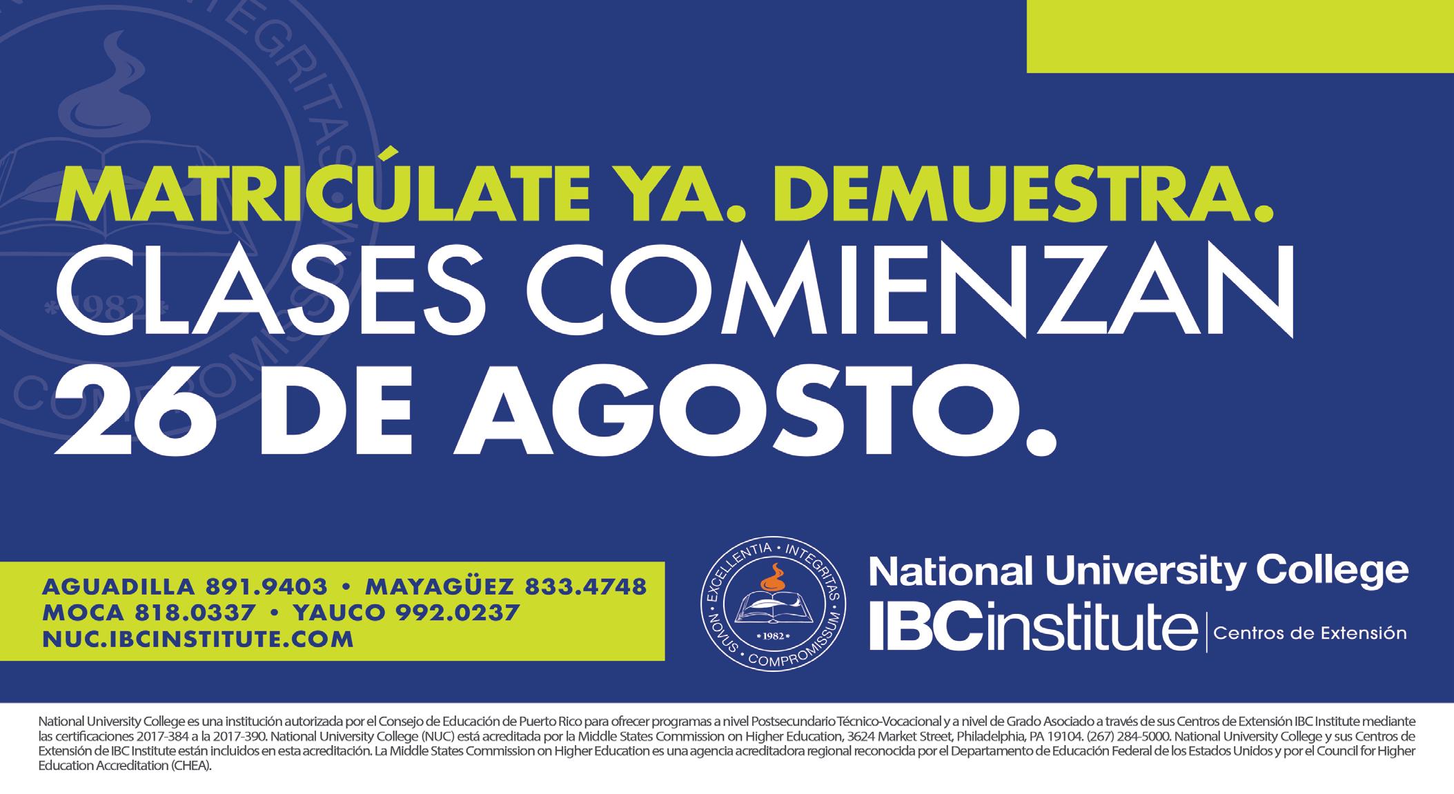 será un destino para que estudiantes del extranjero puedan venir a prepararse a un costo más accesible y de manera rápida. “Nuestro compromiso está en hacer valer nuestro lema, “Demuestra de qué estás hecho” por lo que motivamos y proveemos herramientas a los estudiantes para que puedan exponer al máximo sus talentos y capacidades, puedan destacarse y creer en sí mismos. En NUC IBC Institute estamos enfocados en brindar un aprendizaje integral que sirva de instrumento para desarrollar profesionales exitosos que contribuyan a la transformación de Puerto Rico”, concluyó la Dra. Baquero. Hasta el presente el programa de artes culinarias de NUC ha graduado a más de 30 mil profesionales con grados equivalentes a diploma y grado asociado.