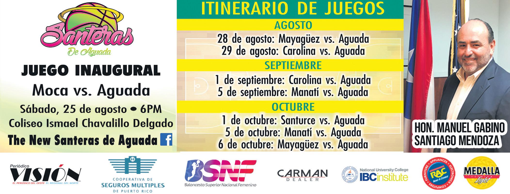 Las Santeras de Aguada regresan nuevamente al Baloncesto Superior Nacional Femenino, esta vez de la mano del apoderado Luis A. Luciano Ramos y con la intención de conquistar el campeonato. Aguada inicia su participación el 23 de agosto visitando a las sub campeonas de la liga, las Atenienses de Manatí. Su primer juego como local será el 25 de agosto, en el Coliseo Ismael “Chavalillo”Delgado, cuando recibirán a las Explosivas de Moca.