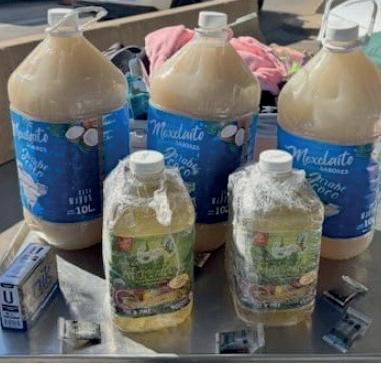 de cinco botellas de plástico, que dieron un peso total de 40.3 kilogramos, de acuerdo con el jefe del puerto fronterizo de Eagle Pass, Pete Beattie.