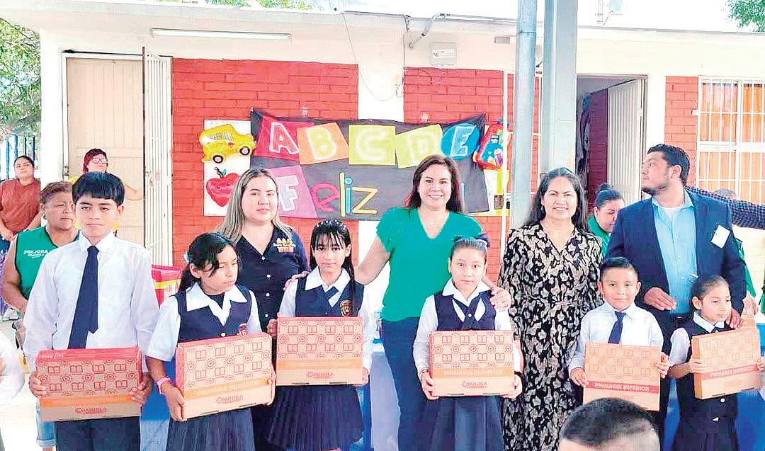 z Con gran júbilo reciben estudiantes el apoyo a sus instituciones educativas, acompañados del alcalde y funcionarios municipales.