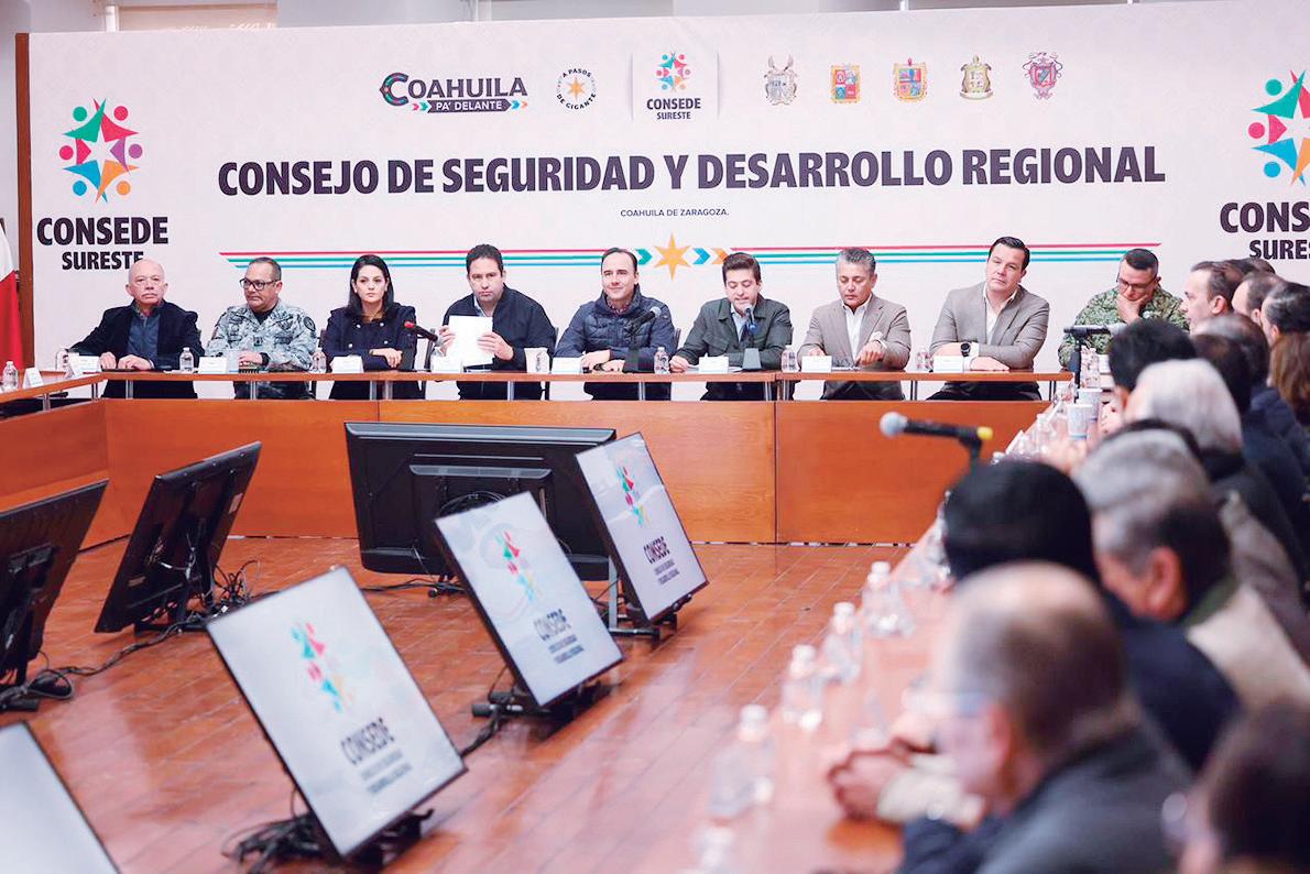 El gobernador Manolo Ji ménez Salinas presidió la reunión del Consejo de Se guridad y Desarrollo Re gional Sureste, en la que se presentaron avances del fortalecimiento de la eco nomía y del empleo 20252026, así como los indica dores en seguridad y los avances en las obras de in fraestructura sostenible.