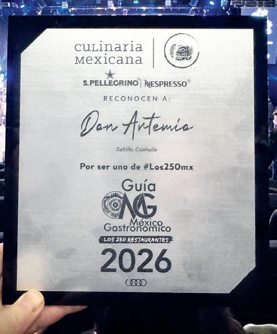 Con este reconocimiento, Don Artemio reafirma su lugar como embajador contemporáneo de la cocina del desierto mexicano y como uno de los proyectos gastronómicos más sólidos de México.