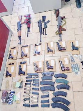 El arsenal se componía de seis armas calibre 9 milímetros, un arma de fuego tipo pistola calibre 9 mm, cuatro armas de fuego tipo pistola calibre .22, tres armas de fuego tipo fusil calibre 7.62 y un arma de fuego tipo fusil calibre 5.56, así como 38 cargadores y 440 cartuchosútiles.