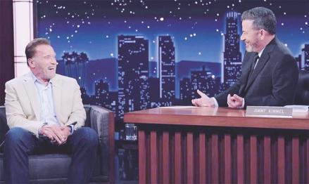 z Jimmy Kimmel y Arnold Schwarzenegger tras la huelga de guionistas..